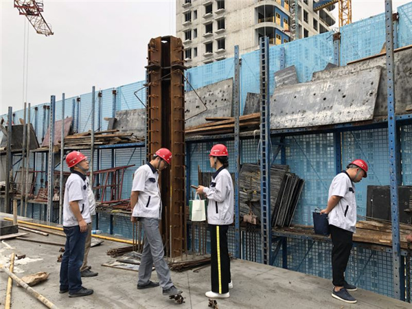 公司管控部组织对宜昌国际广场项目整体提升脚手架、塔吊、吊篮、施工电梯等进行安全检查