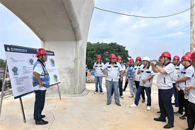 活动以"人人讲安全、个个会应急—查找身边安全隐患"为主题,分为现场观摩活动和专题座谈会两个环节。在现场观摩中,公司副总经理、峡州大道三期项目总监秦晋江引导大家共同观摩了现浇箱梁(挂蓝、现浇支架)及预制箱梁(架桥机吊装)等两个项目关键性施工作业点,与会人员在实地观摩学习的同时,就核心施工工艺技术要求、质量安全监理检查控制措施及系统性风险管控等进行了深入互动交流。